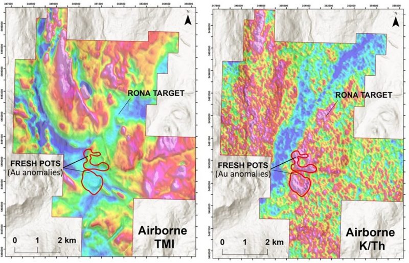- South Fresh Pots Target: Au-in-soil anomaly expanded to 800m x 800m
