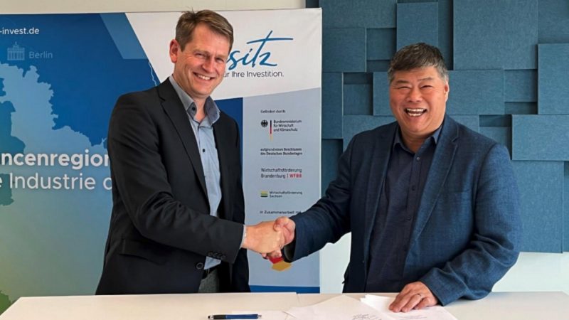 Leadec MD Frank Seifert with Altech MD Iggy Tan, after signing services agreement at Altech’s CERENERGY Project in Germany. Source: Altech Chemicals