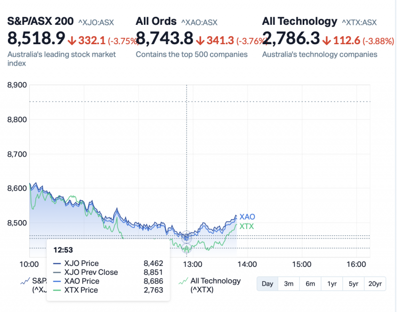 The sum of all those inputs? Well, at one point on Monday before the afternoon rolled in, the ASX200 (or XJO if you prefer) actually dropped below -4% in a single session, marked by an intraday low below 8,500pts.