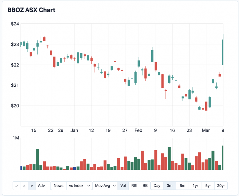BBOZ 3mth performance as a candle chart (Market Index)