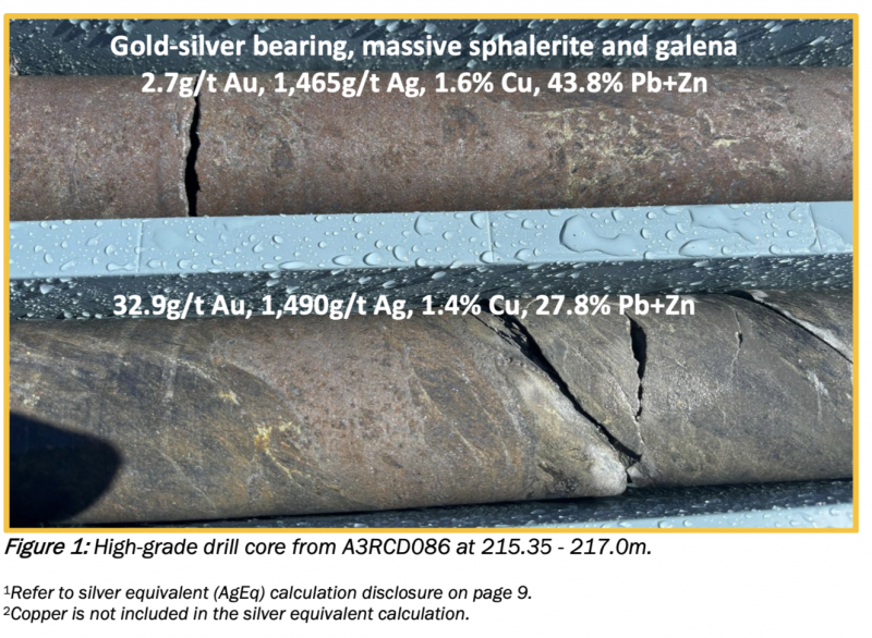 Broken down further, the core in question contained a 0.9m pocket which graded higher at >5,300g/t Ag Eq (33g/t gold) with a further 11 drillholes to be assayed and delivered back to market as part of company newsflows in the coming weeks.