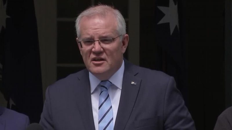 Prime Minister Scott Morrison speaking at Sunday's press conference. Source: Reuters