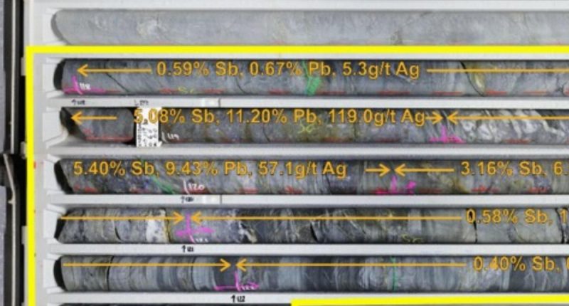 Black Cat’s program primarily targeted the Taipan lode structure with significant results including 5.0m at 2.52% Sb, 4.14% lead and 34.38 grams per tonne (g/t) silver from 118.00m; and 1.10m at 3.10% Sb, 6.37% lead and 35.10g/t silver from 246.20m – which was drilled outside current resource.