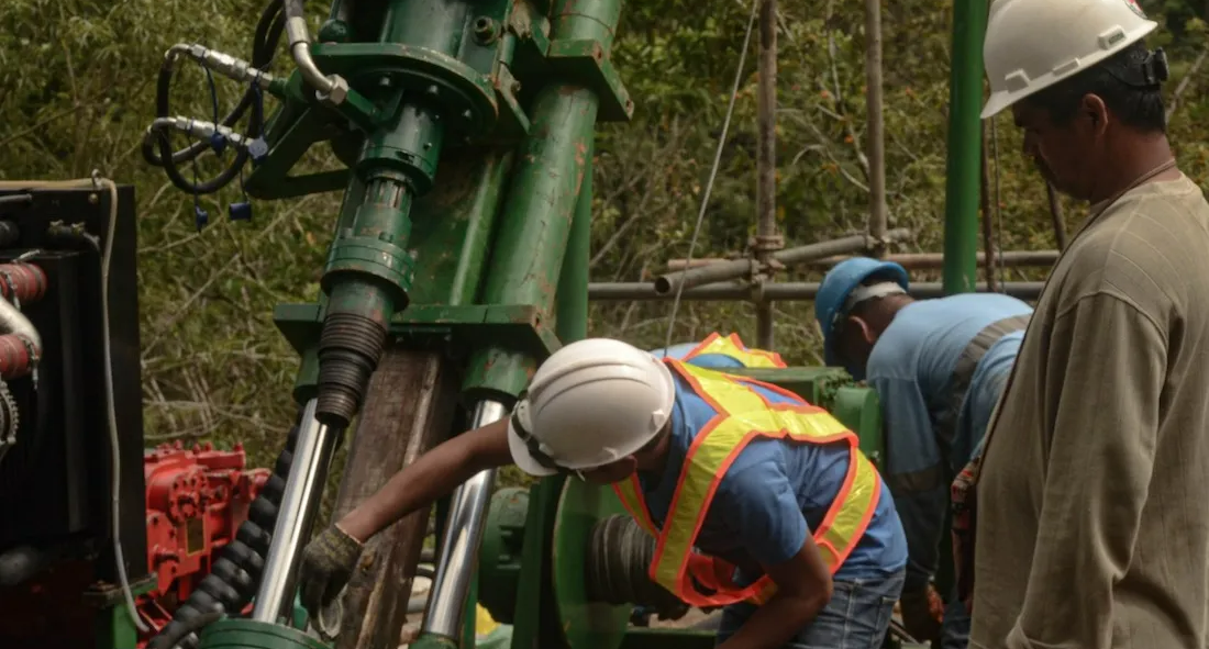 Celsius Resources workers set up a drilling exploration rig at MCB Project.