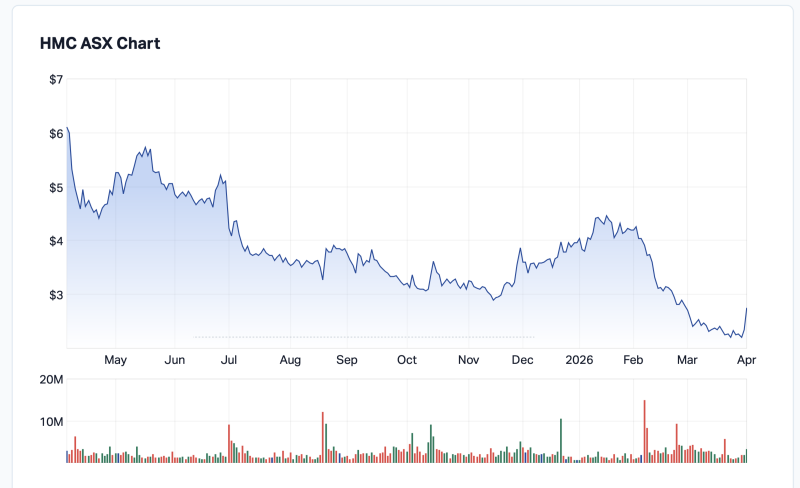 Regardless of the low base effect, while Anthropic isn’t an ASX-listed stock, I’m willing to bet its Wednesday MOU with Canberra is a driving factor behind HMC’s Wednesday outperformance. (HMC did on Tuesday outline its recent visit to a big battery storage site in Victoria, but vague promises of using renewable energy aren’t the kind of thing that ASX investors usually care about.)