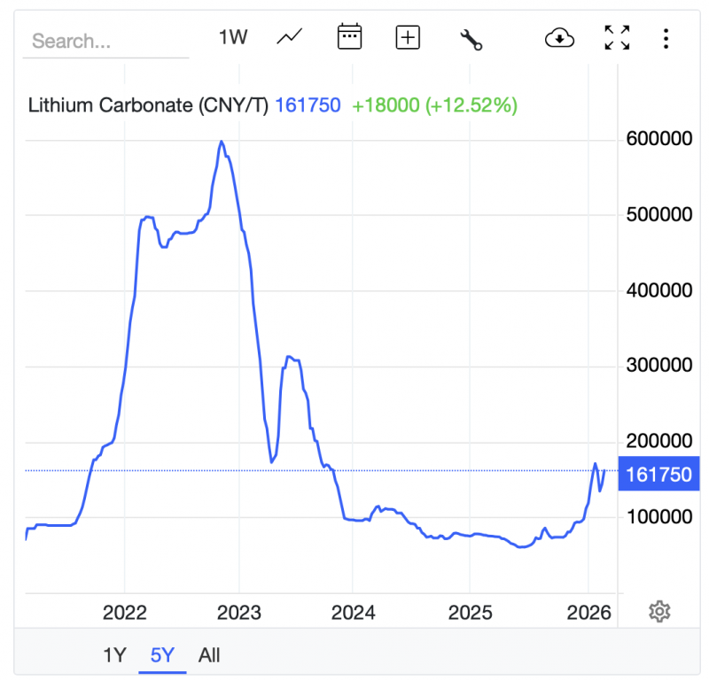 Lithium carbonate futures in CNY over 5Y (TradingEconomics)