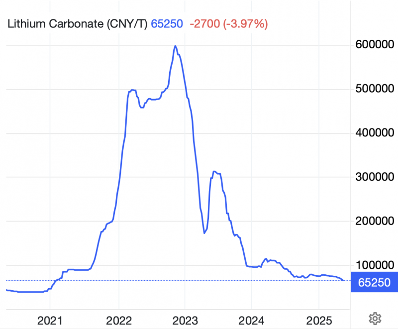 And now there’s still a whole lot of supply, but, less demand as dynamics in EV markets and elsewhere have changed in the last few years. So that’s bad news for lithium miners when it comes to share prices (and for anybody still holding a bag.)