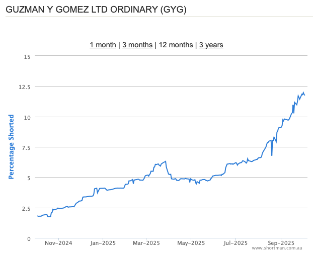 That’s short-selling pressure. Guzman y Gomez is currently one of the most shorted stocks on the market, with Australian short sellers currently covering some 11% of Guzman y Gomez’s total shares on issue.