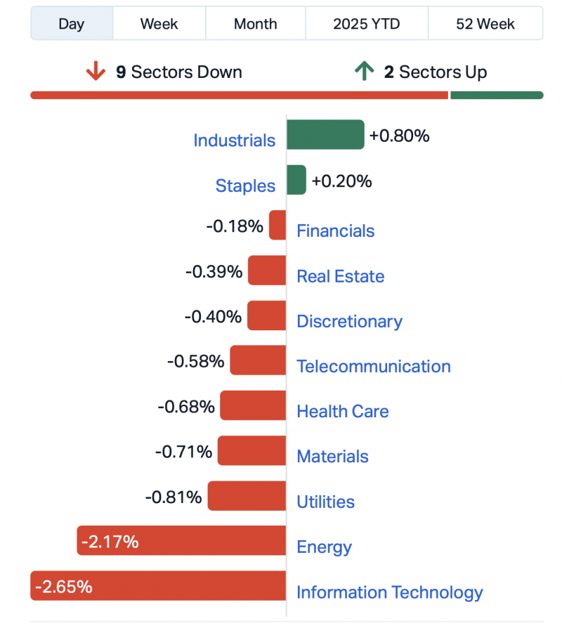 Tech jitters continue, oil prices down on OPEC supply cuts and a lack of the kind of geopolitical risk that oil saw a few years ago (or, indeed, perhaps geopol risk fatigue among traders.) At any rate, gold’s still running hard, and even an uptick in iron ore prices on the SGX wasn’t enough to save sentiment.