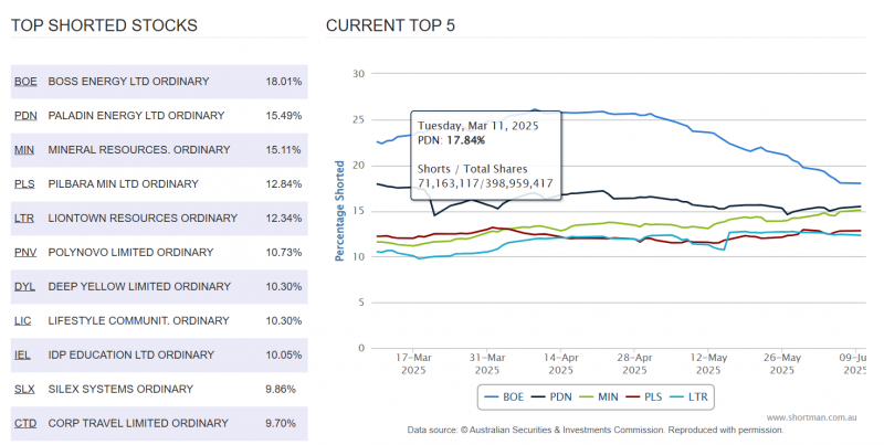 It’s a particularly interesting watch – and is already being celebrated by HotCopper forum users who’ve long backed uranium – considering Boss and Paladin both stand as the most-shorted stocks on the bourse, at time of writing.