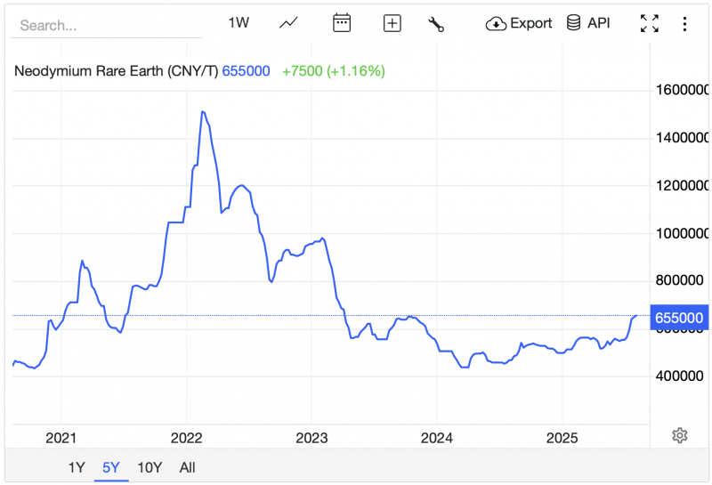 The other factor is that, right now, Nd prices are having a lithium moment. Or at least, it was. But with prices up +17% in the last month, you’ve also got upside coming from metals markets, too.
