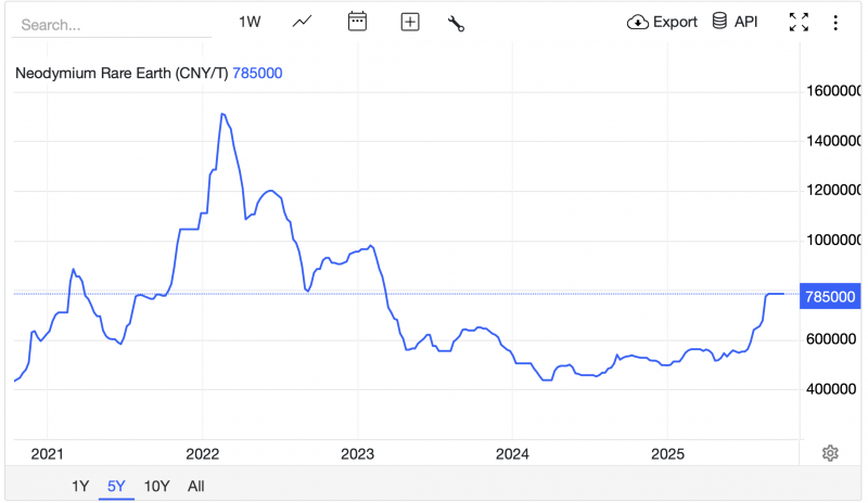 (In fact, a combination of the price floor following Washington’s investment into MP Materials, and the fact that the latter stopped exporting NdPr to China, has helped push NdPr prices to new highs.)