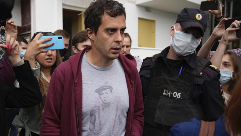 Mr Dobrokhotov said police had confiscated his passport in July after officers searched his home and named him as a witness in an unrelated slander case.