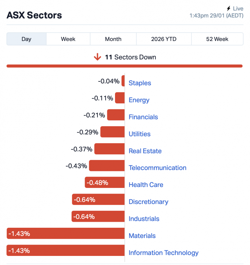 While reports the US gov’t may have ‘changed its mind’ on providing a price floor for REEs are unconfirmed – the value prop that saw REE stocks juice hard in CY25 during the Albo-Trump meeting – it’s been enough to turn many risk-off, a Church which probably isn’t too hard to find converts for at the moment.