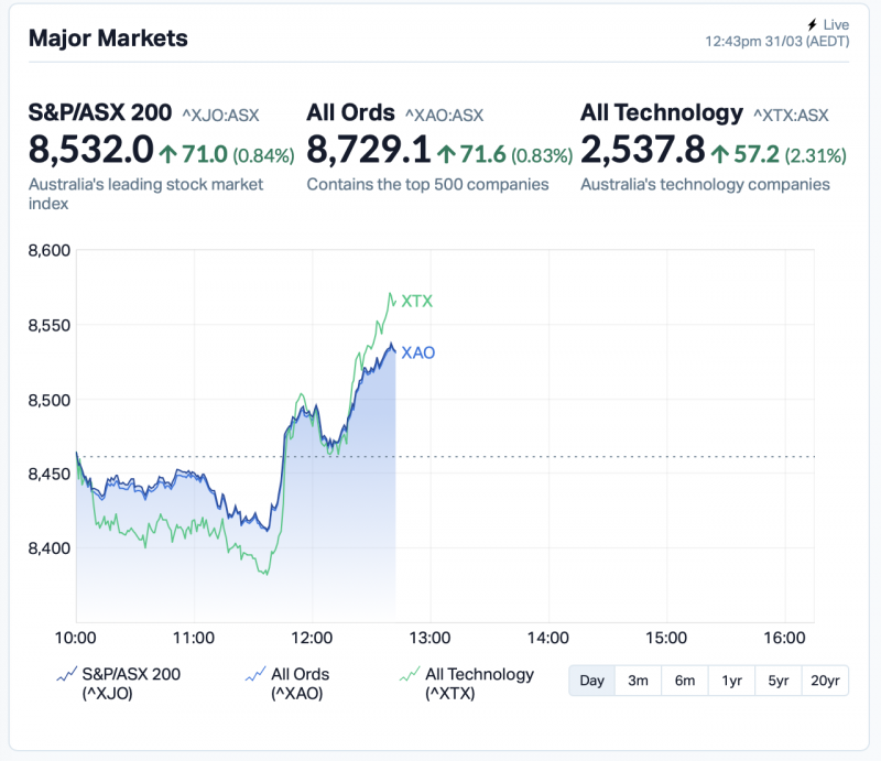 In turn, the ASX has staged a surprise rally. At time of writing – about twenty minutes left in lunch hour heading into 1PM AEDT – the market’s up +0.8%, well and truly paring off what had been another dismal start to another trading day.