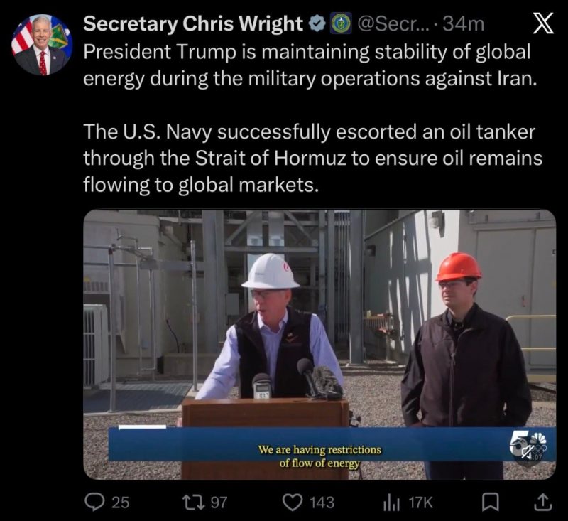 Cue a dip in oil prices (Brent) to US$85/bbl – up until the U.S. Energy Secretary then deleted that tweet. Then Washington confirmed the U.S. Navy had not, in fact, helped anybody navigate the Strait of Hormuz.
