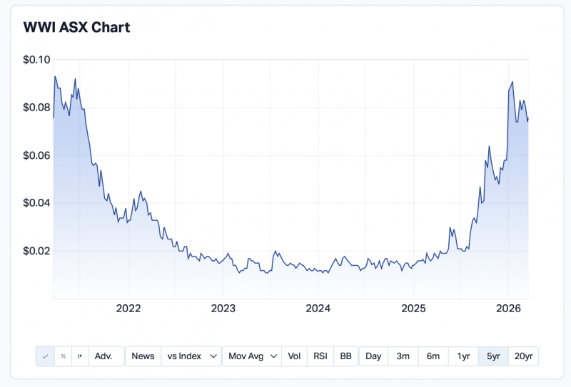 The last 5Y of WWI’s share price as a line chart (Market Index)