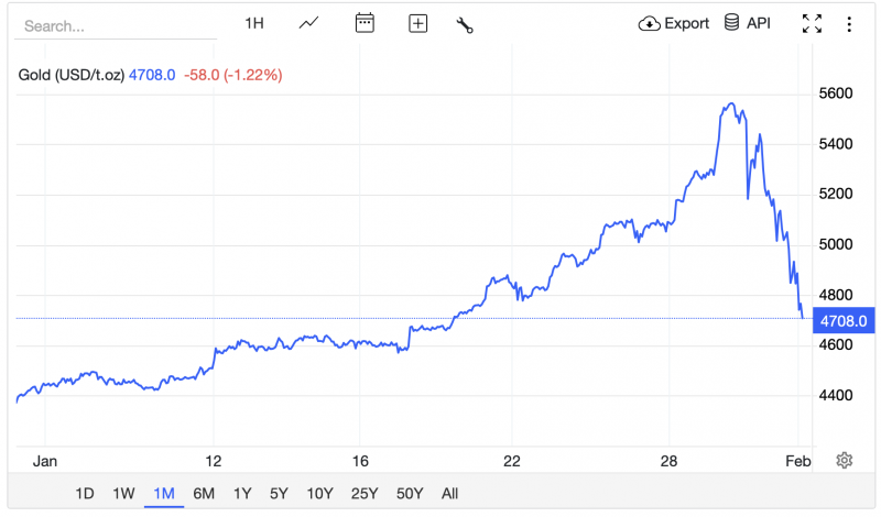 That’s for silver. Here’s what gold looks like over one-month expressed as a line chart.