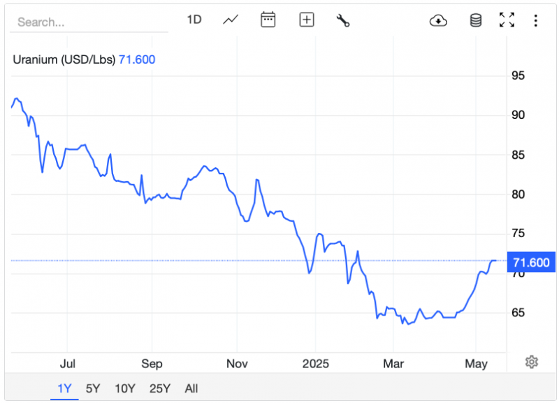 And one might be quick to assume, well, surely the price of uranium has dipped overnight. Right?